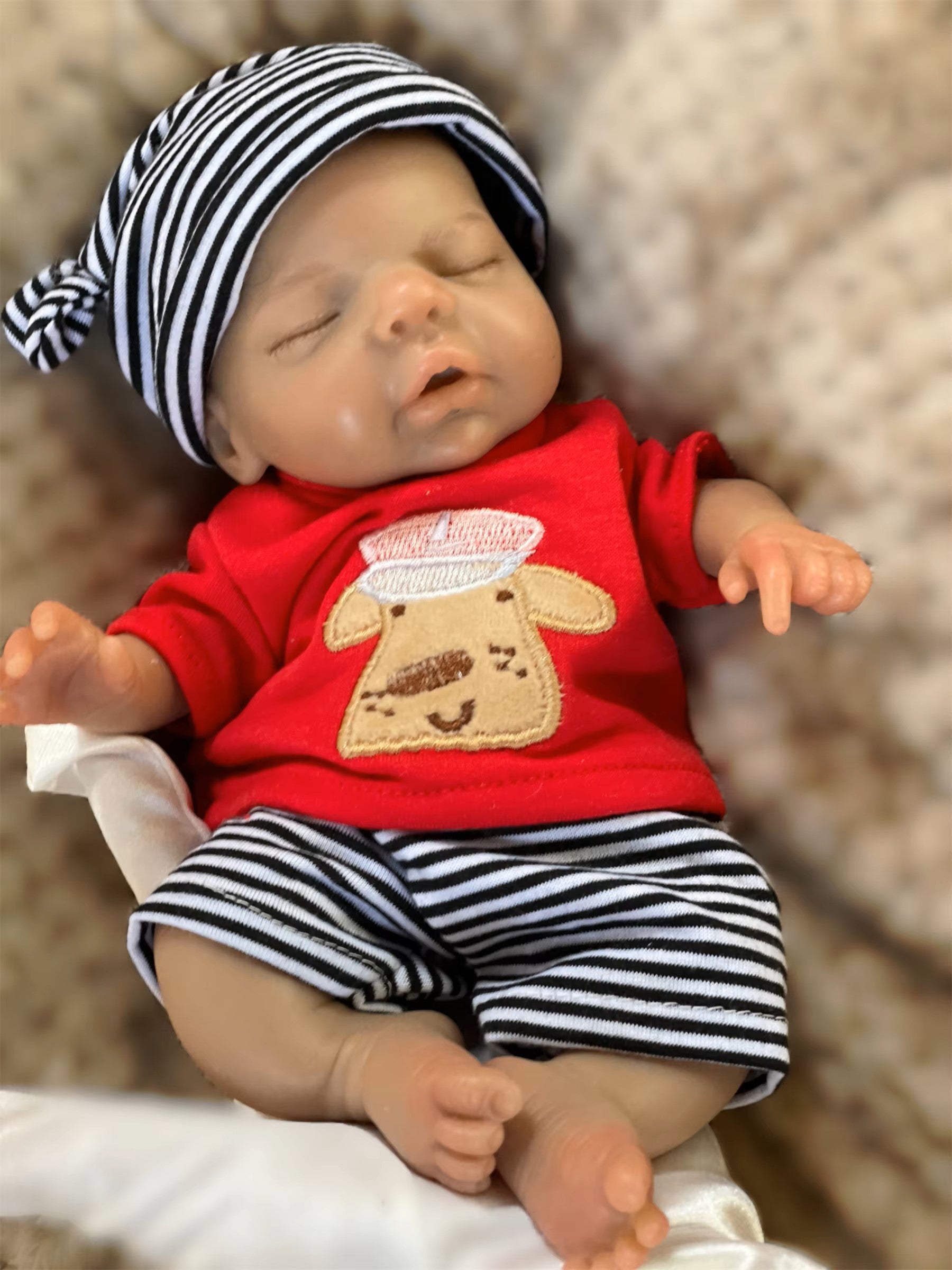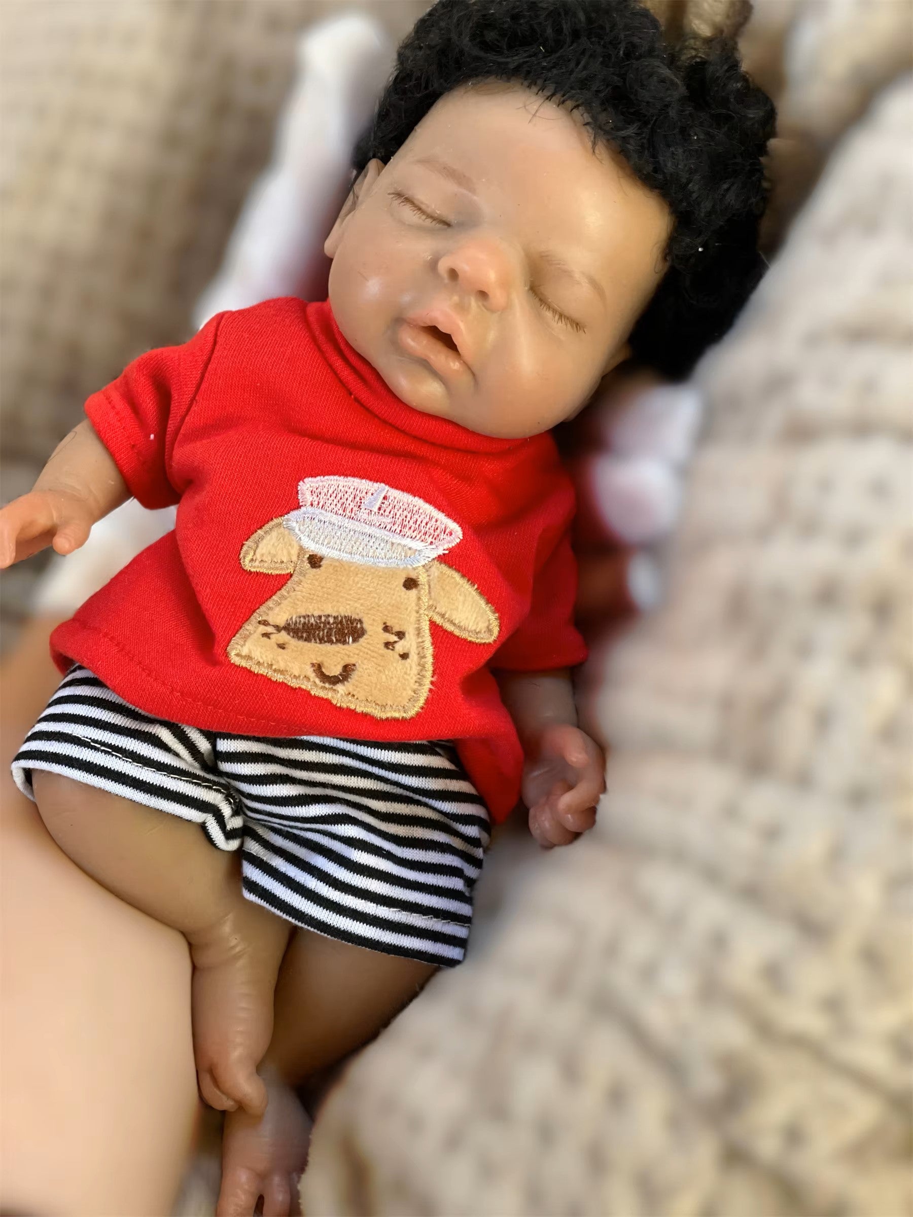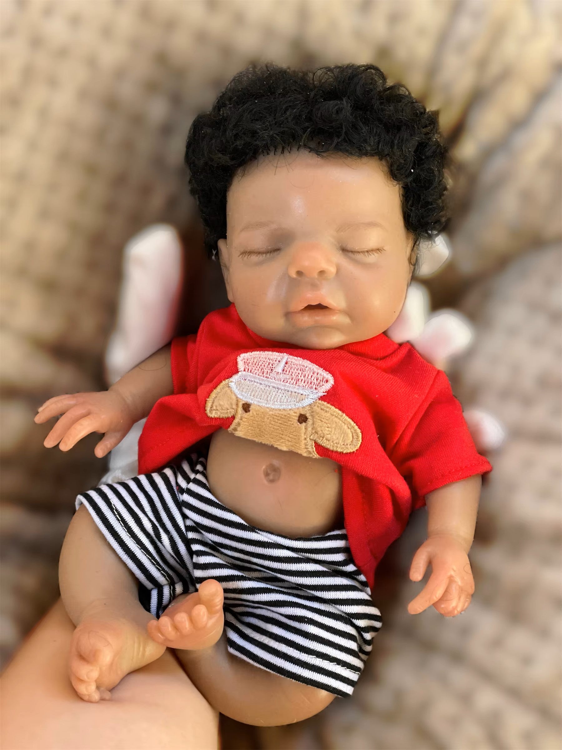 Meet our lifelike 26cm (10-11 inches) Bebe Reborn Boy, crafted with love and attention to detail! This charming doll features rooted black hair and 3D painted skin, making him a beautiful addition to any collection or a delightful gift for a child.